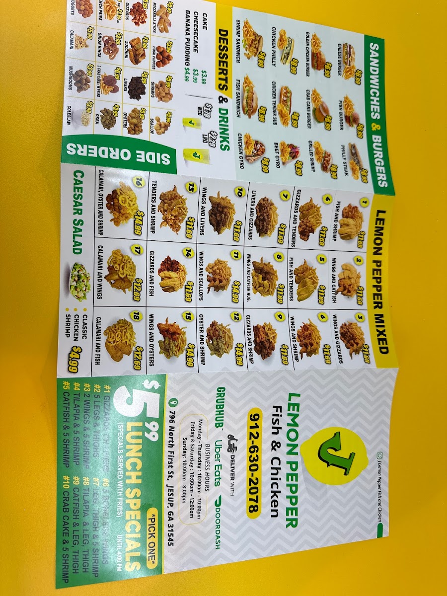 Welcome to J Lemon Pepper Fish and Chicken, a culinary gem nestled in the heart of Jesup, GA, located at 796 N 1st St. This vibrant establishment has quickly gained a reputation for its commitment to quality food and exceptional service. With a focus on fresh ingredients and flavorful seasonings, J Lemon Pepper promises an unforgettable dining experience that caters to families, friends, and anyone with a hearty appetite.